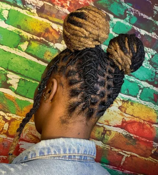 Yarn Locs in Two High Buns